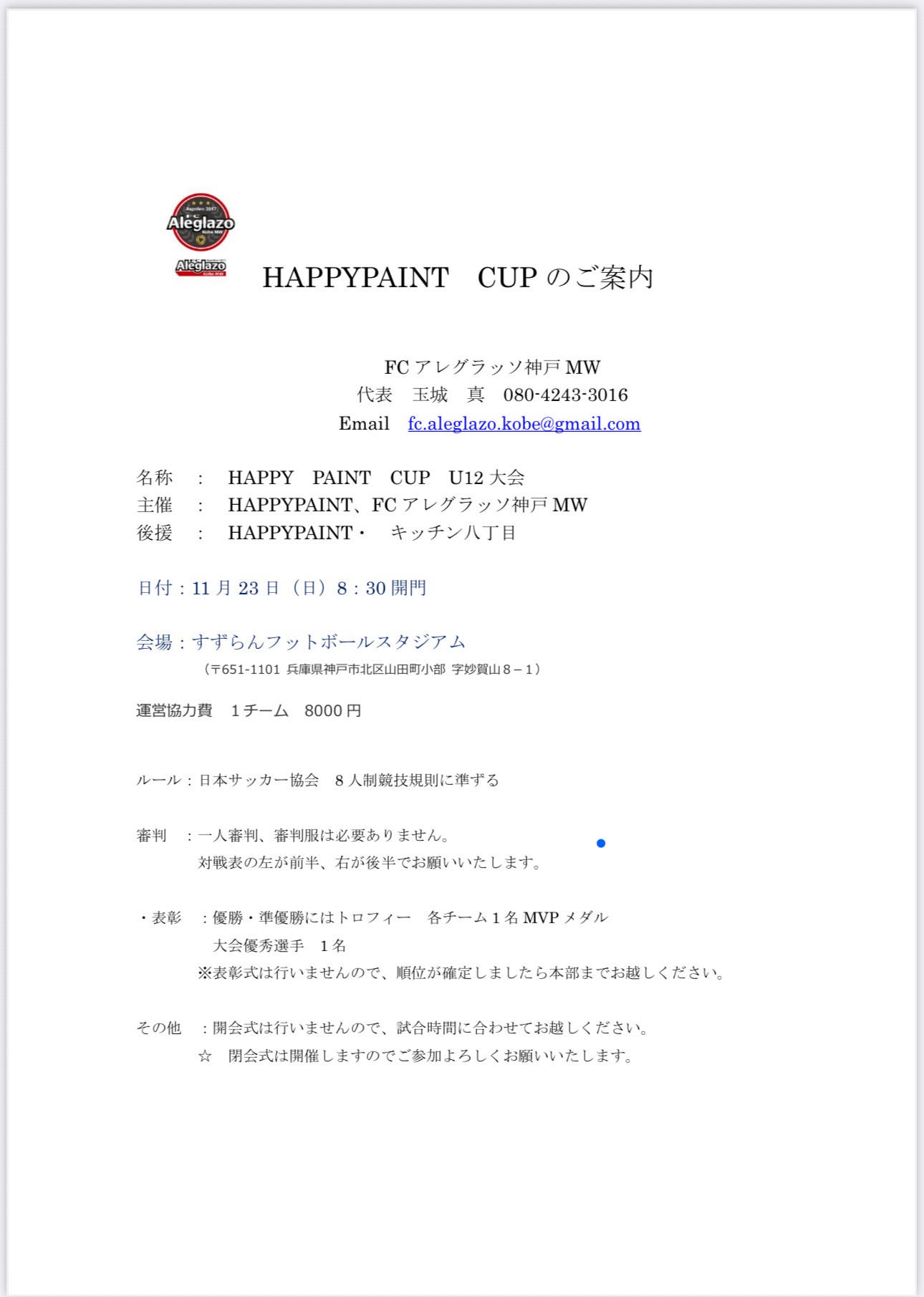 2025年11月23日 HAPPY PAINT杯 U-12優勝